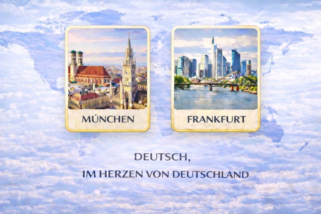 Lernen Sie Deutsch dort, wo es natürlich gesprochen wird – im Herzen ikonischer Städte wie München und Frankfurt, zwischen Tradition, Innovation und urbanem Leben.