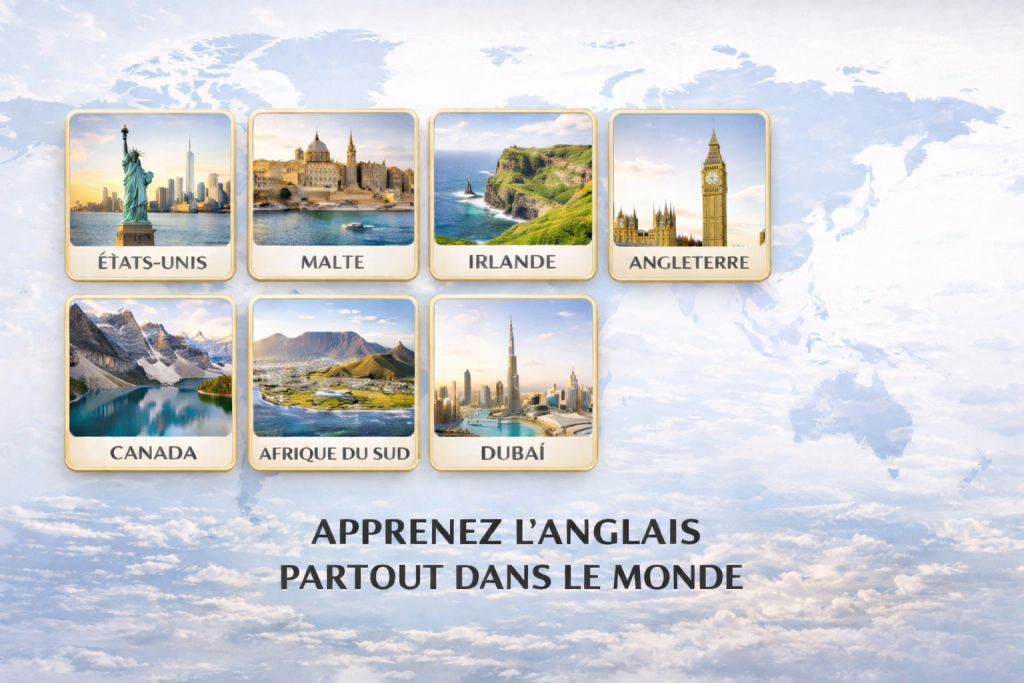 L’anglais ne se limite pas à l’Angleterre. Il est la langue officielle ou largement utilisée dans plus de 70 pays. Des États-Unis au Canada, de l’Irlande à l’Australie, de l’Afrique du Sud à Dubaï, l’anglais s’apprend, se pratique et se vit partout dans le monde.